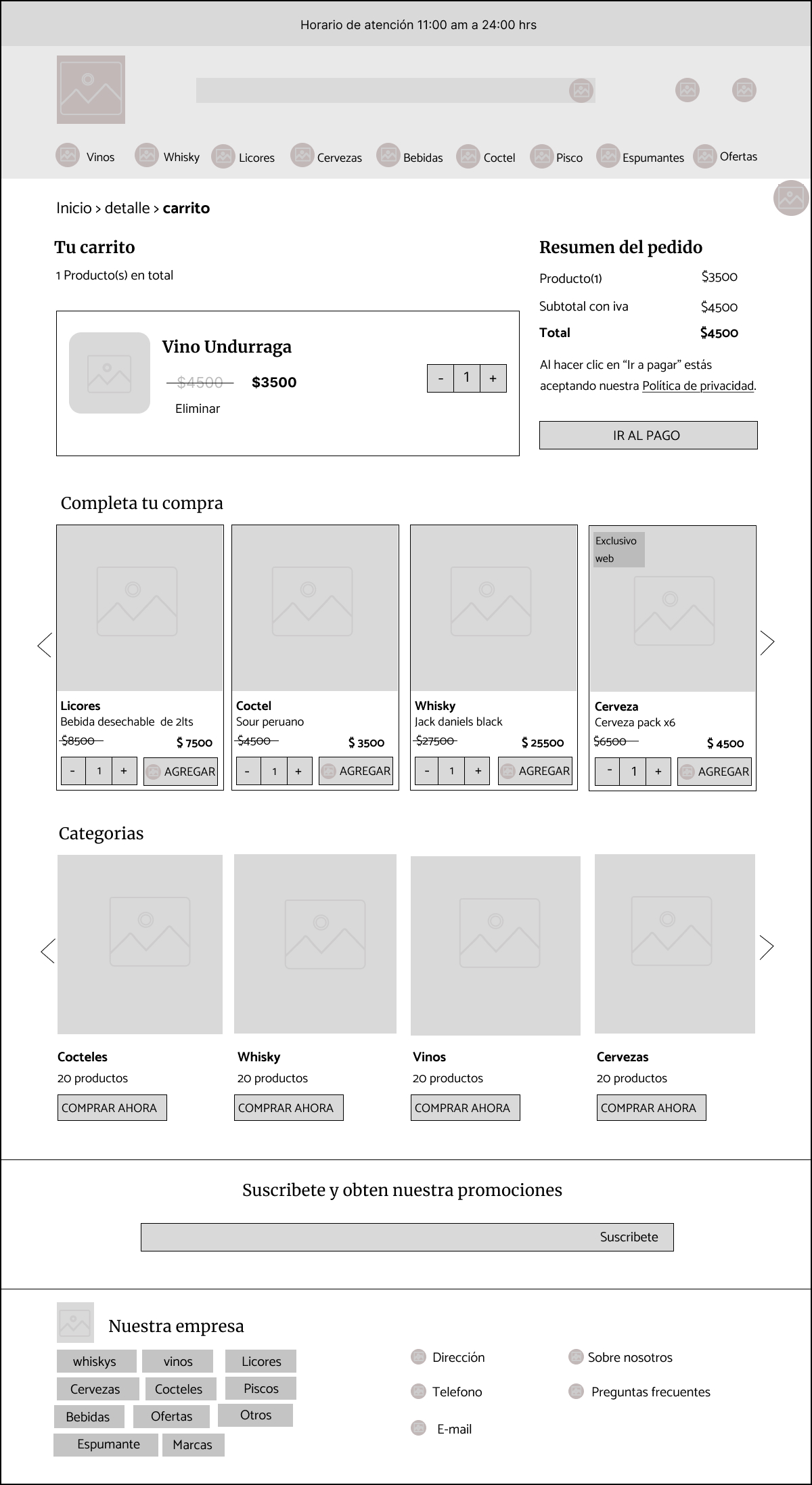 | liquidos.cl | Proceso de compra limitado y poco claro. | Varias pantallas para completar compra, poco intuitivo. |