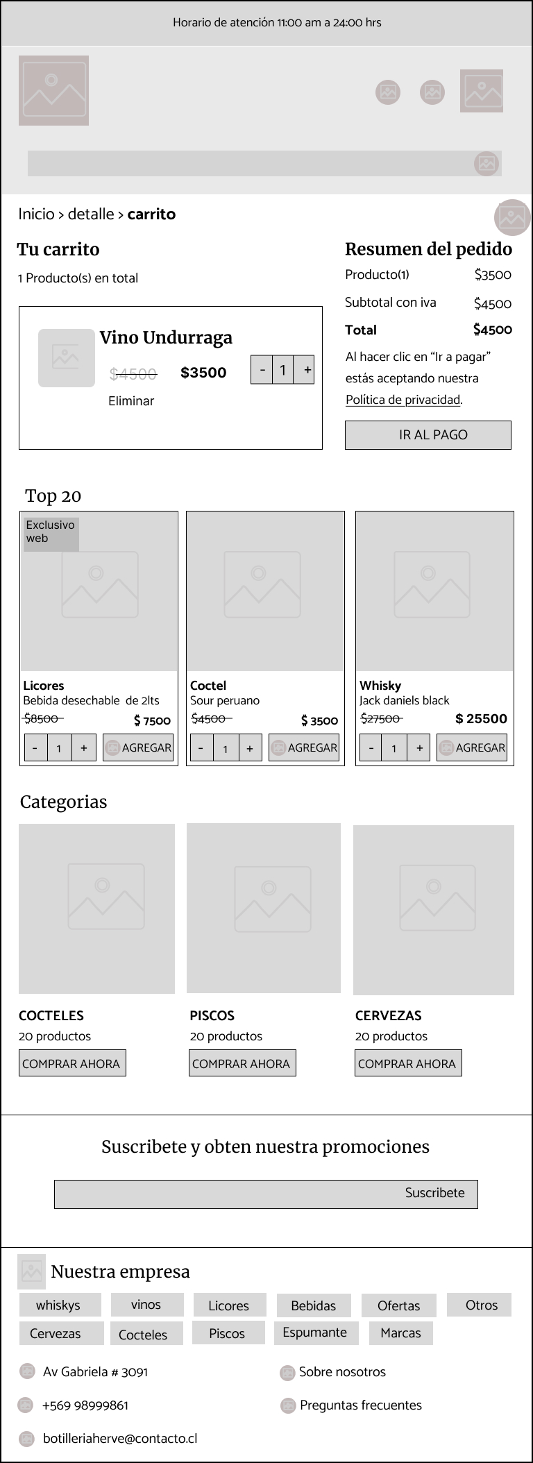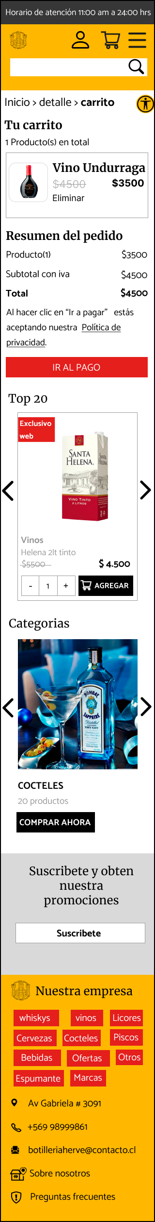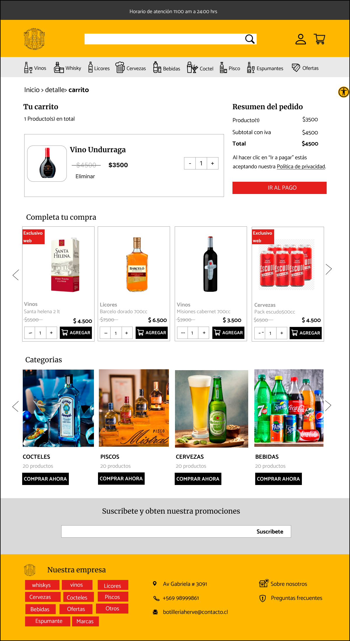 | housebar.cl | Proceso sencillo, integración con app externa de delivery. | Poca retroalimentación visual dentro del Botilleria. | |
