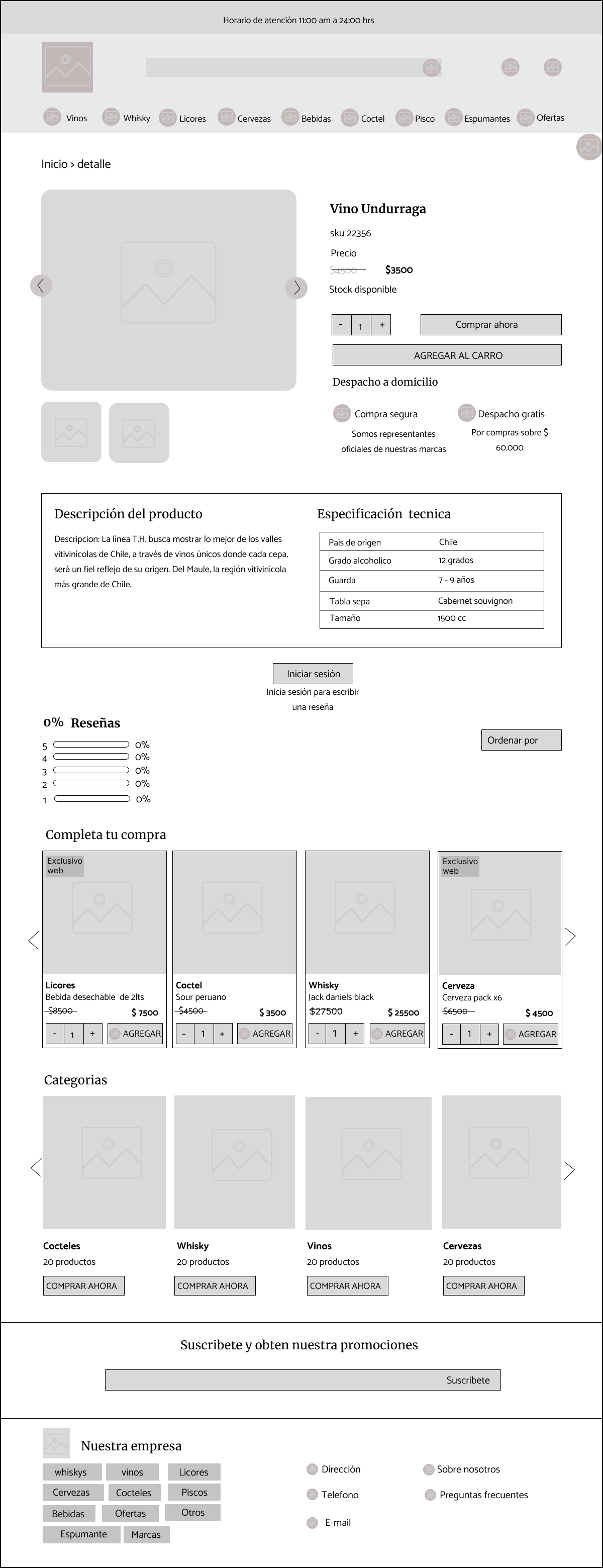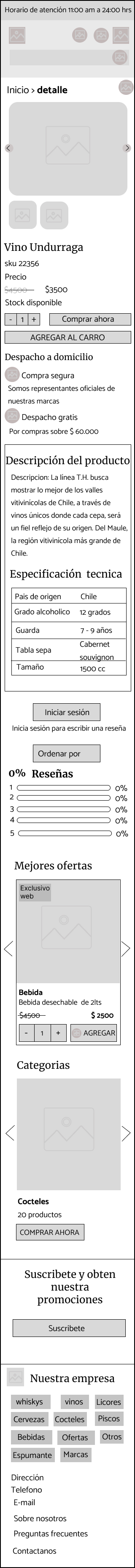 | liquidos.cl | El Botilleria requiere varios clics para llegar a productos específicos. | La jerarquía de información es confusa en la página principal. |