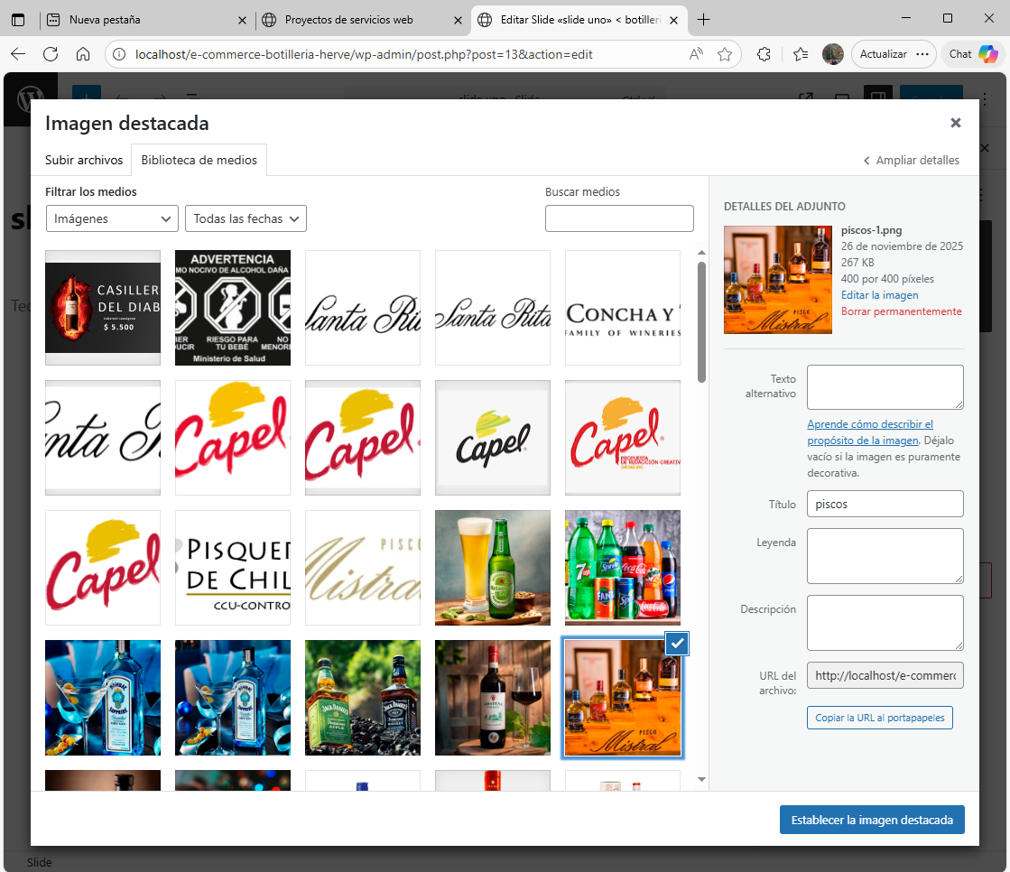 | Hito n.º 9 | Semana 9 | 21-12-2025 | Integración de la pasarela de pago, documentación completa del sitio y clases de administración de WordPress para los dueños de Botillería Hervé. Pruebas finales y publicación del proyecto. |
